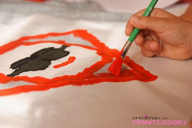 Éstas nos venían en este kit para pintar camisetas, en el que venía una camiseta talla 7-8 años, papel para transferir el dibujo, lápiz para transferir, pincel y 5 pinturas, en la página de La Pajarita podéis ver un tutorial con plantillas: