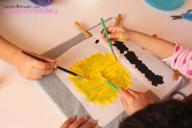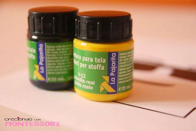 Y ya tenemos todo preparado para pintar la primera parte. Usamos pinturas para telaLa Pajarita: