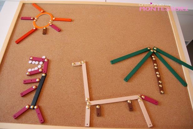 Con este material se pueden aprender muchas cositas de geometría como rectas, ángulos, poligonos... pero también tiene un alto potencial creativo que les encanta!